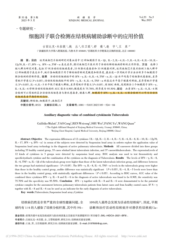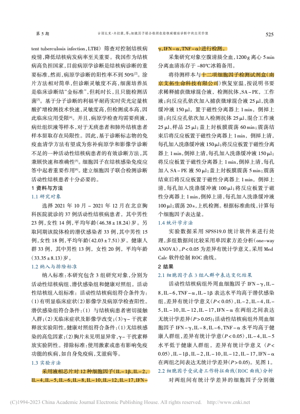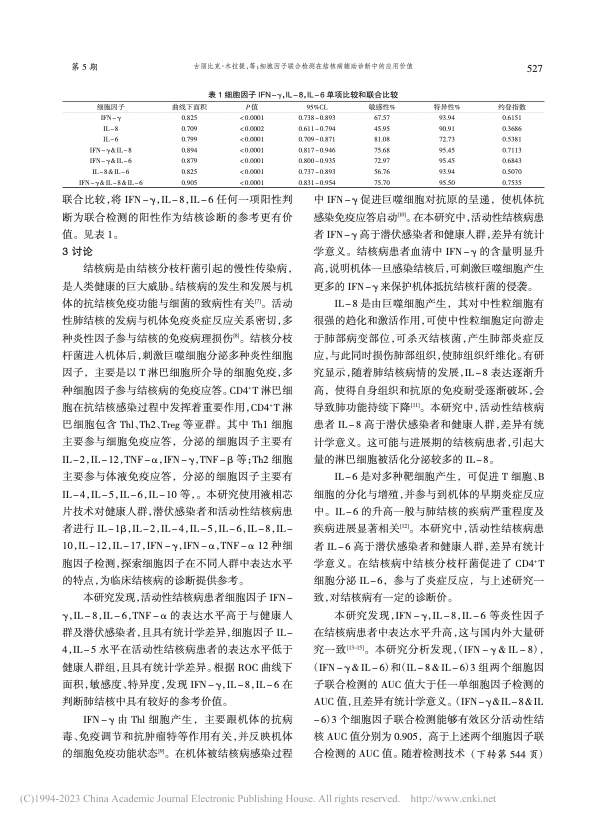 细胞因子联合检测在结核病辅助诊断中的应用价值